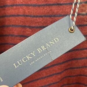 Lucky Brand Linen Striped Burgundy Top size X S NWT. Approx. measurements 17” chest flat across, 24” length.