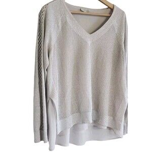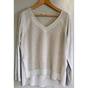 Lucky Brand Linen Sweater Women's Large Gold Shimmer Lightweight Layered