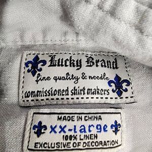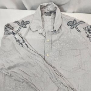 Lucky Brand Linen Shirt Size XXL Embroidered Long-Sleeve Button-up Men's Grey