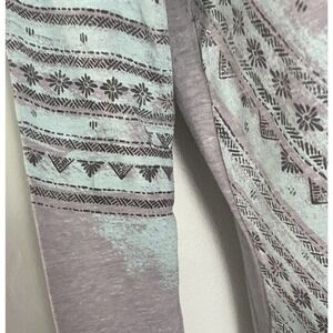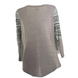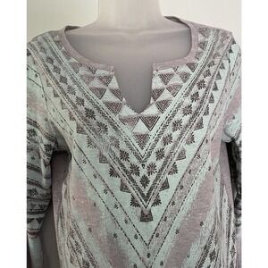 Lucky Brand Live In Love Fair Isle Print Shirt Womens Medium Gray Aqua V Neck