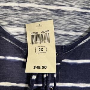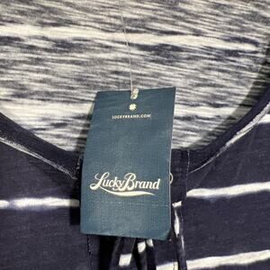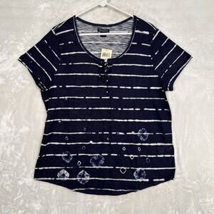 Lucky Brand Live in Love Blouse 2X Embroidered Striped Blue Tie Women