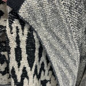 Lucky Brand Live in Love Cardigan Womens 1X Black Cream Open Sweater Pockets Boho 7QP5000, cotton blend, heavy knit. Contrasting patterns.