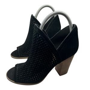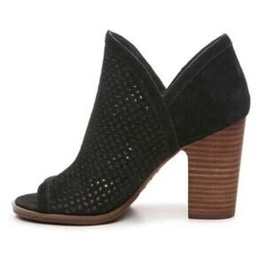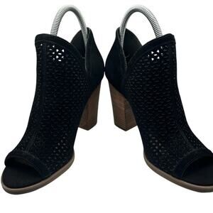 Lucky Brand Women's Livey Ankle Boots Booties Black Suede Perforated Peep Toe
