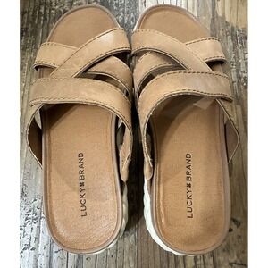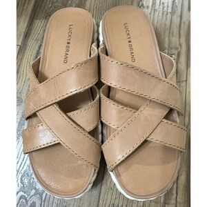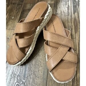Lucky Brand Loftee Brown Leather Slide Sandals Size 6.5/37 Braided Espadrille