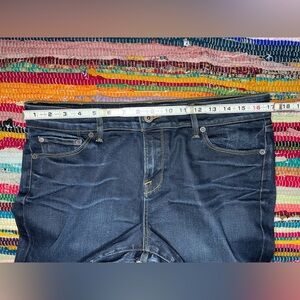 These dark denim jeans are the perfect wash to classy up or for casual wear. They feature stretch for comfort and the classic boot cut for any occasion. Minimal wear and ready for your closet.