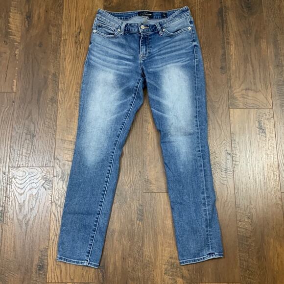 Size 6/29. 28 1/2 inches. Waist 30 inches. Rise 9 inches. Inseam 28 1/2 inches. Stretchy. Great condition!