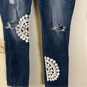 Lucky Brand Lolita Skinny Jeans with Crochet Accents Dark Wash Mid Rise 10 / 30