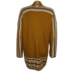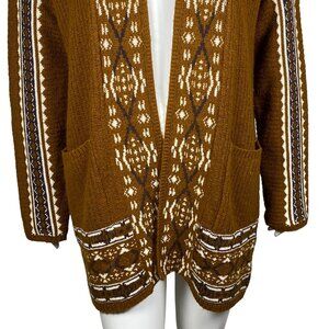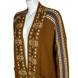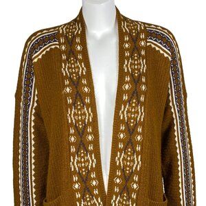 Lucky Brand Long Cardigan Womens Size L Aztec Southwest Boho Brown Ribbed Knit