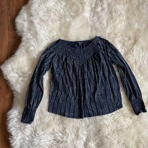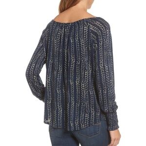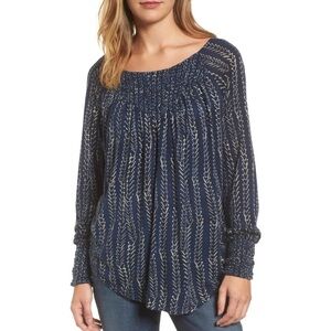 Lucky Brand Long Sleeve Chevron Smocked Top Blue S