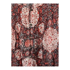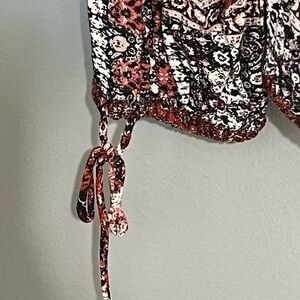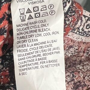 Lucky Brand Long Sleeve Printed Blouse Medium Brick Red Tie Cuff Lightweight Top