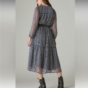 Lucky Brand Long Sleeve Raven Multi Print Peasant Boho Maxi Dress Size large NWT