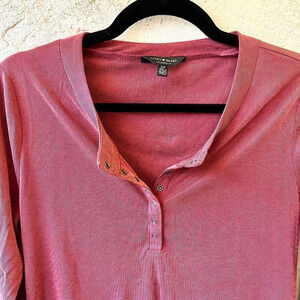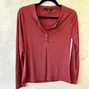 Lucky Brand Long Sleeve Ribbed Snap Henley Top in Red Size Small