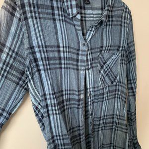 Lucky Brand Long Sleeve Top - Sheer Button Down - Blue Plaid