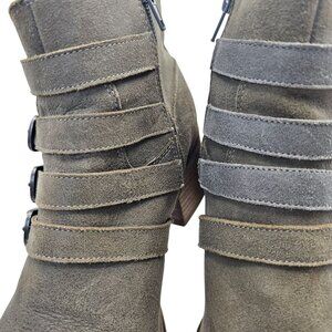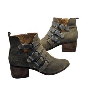 Lucky Brand Loreniah Suede Buckle Booties 8.5M Leather Heeled Ankle Boots