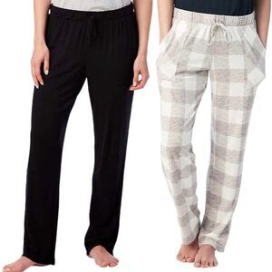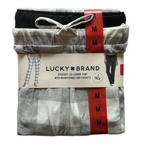 This giftable 2 Pack of Lucky Brand lounge pajama pants contains (1) Simple Buffalo Plaid Grey and (1) Black: