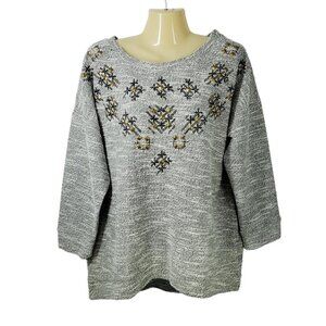 Lucky Brand Lucky Lotus Sweater Embellished Studs Knit Women's Size L