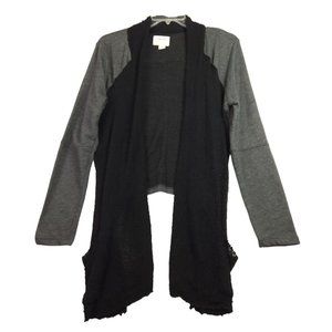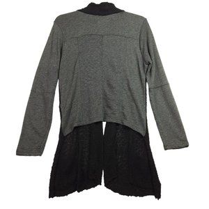 Lucky Brand Lucky Lotus Womens Cardigan Size XL Gray Black Open Front High Low