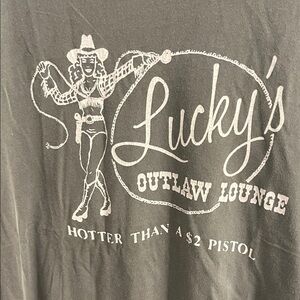 Lucky Brand “Lucky’s Outlaw Lounge”Gray Short Sleeve Tee Graphic Design