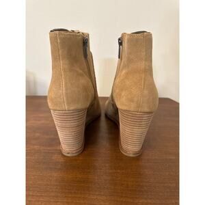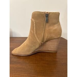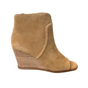 Lucky Brand Lureli Peep Toe Wedge Suede Tan Booties Size 9.5 New
