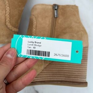 Lucky Brand Lureli Peep-Toe Wedge Booties suede tan size 10 new