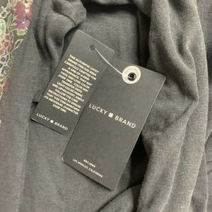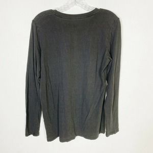 Lucky Brand M Acdc Floral Tee Long Sleeve Black Gray Gold Metallic Tshirt Top
