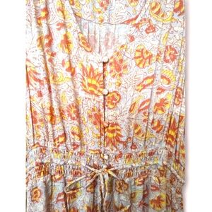 Lucky Brand M Light Pink & Orange Floral Hi-Lo Maxi Dress. Measuring 18" pit to pit, 15" waist, 53" total length, 36" length from waist, 3" cap sleeves. Fabric viscose, lining is polyester. Pre-loved, excellent condition 💕