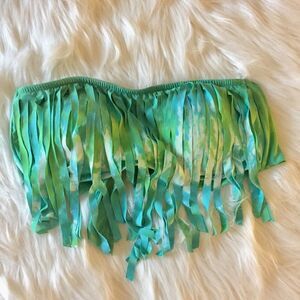 Lucky Brand M Summer Time Tie Dye Fringe Bandeau Bikini Top Swimsuit Green Boho