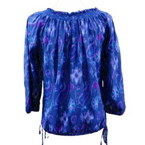 Lucky Brand M drawstring waist top ikat paisley print blue purple