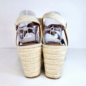 Lucky Brand Maeli Beige Gold Strappy Espadrille Wedge Sandals Size 10M