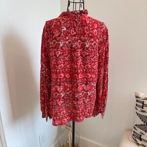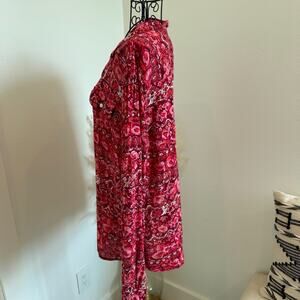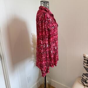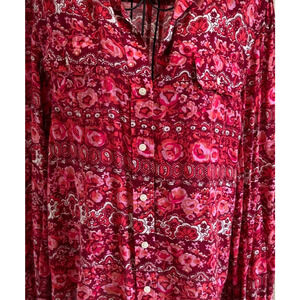 Lucky Brand Magenta Red & Pink Floral Print Button Down Collared Blouse Medium