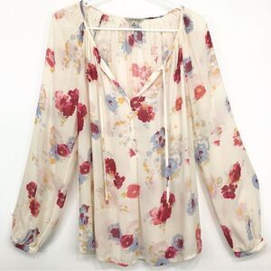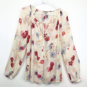 Lucky Brand Cream Floral Boho Peasant Festival Blouse