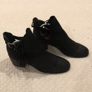 Lucky Brand brings a touch of western flair to these Makenna booties with buckled side cutouts and fringe lifted up on a chunky block heel.