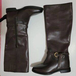 Lucky Brand Maltet Tall Buckle Riding Boots Brown Leather 10M Stacked Heel