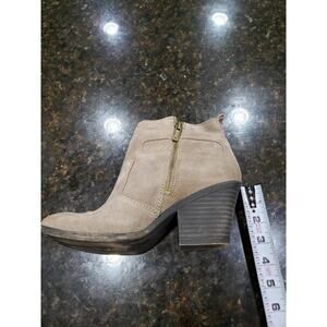 Lucky Brand Mantova Ankle Boots Womens 8M Beige Round Toe Block Heel Side Zipper