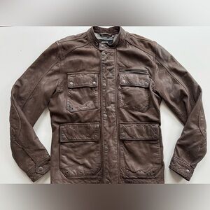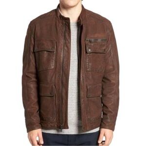 Lucky Brand Manx Cafe Racer Brown Leather Biker Moto Jacket Men's Size S
