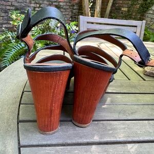 Lucky Brand Marinaa Black Leather Wedge Sandals – Size 8 -- 90s Y2K Chunky Retro