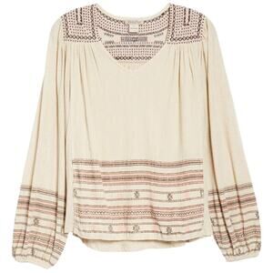 Lucky Brand Market Embroidered Peasant Blouse XS