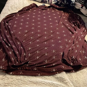 Lucky Brand Maroon Floral Print Long Sleeve Shirt Sz Medium Soft Boho