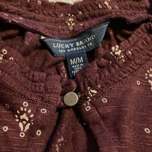 Pre Loved in EUC Lucky Brand Maroon Key Hole Front Long Sleeve Shirt Sz M