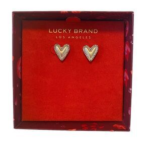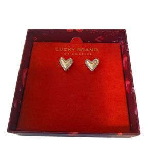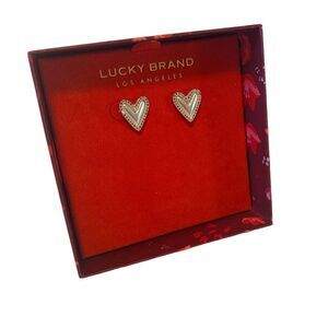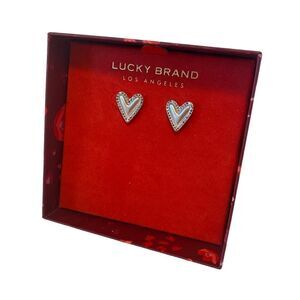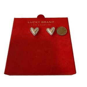 Lucky Brand Matte Silver Heart Posts Outlined in Pave Crystals. Very Pretty!