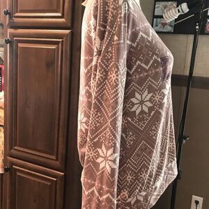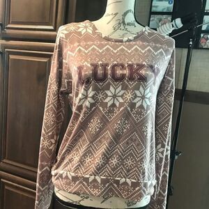 Lucky Brand mauve long sleeve shirt with snowflake and logo details.
