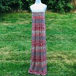 Sleeveless maxi dress in bold and colorful geometric pattern by Lucky Brand. Size L