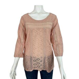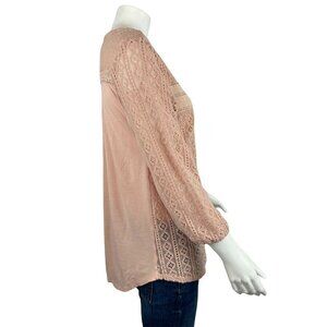 Lucky Brand Medium 3/4 Sleeve Lace Shirt Knit Back Pink Sheer