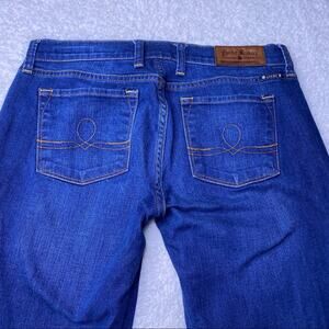 Lucky Brand Medium Blue Sofia Boot 8/29. Preowned and in great condition. Looks like brand new jeans. Has fashion fading on front and back. Boot fit.