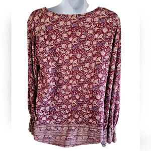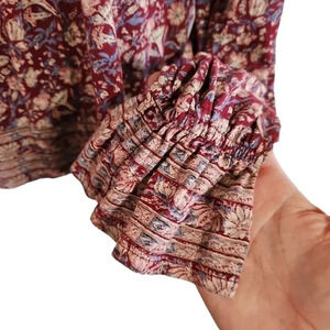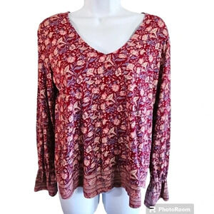 Lucky Brand Medium Red Floral Boho Bell Sleeve Peasant Cottagecore Top Preppy
