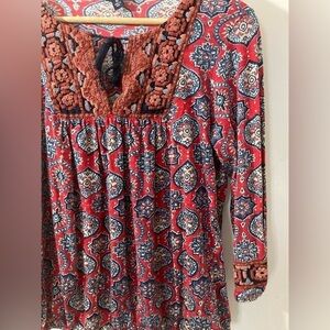Lucky Brand Medium boho blouse long sleeve tie string keyhole neck