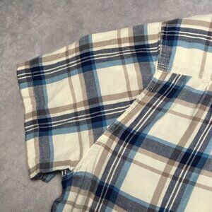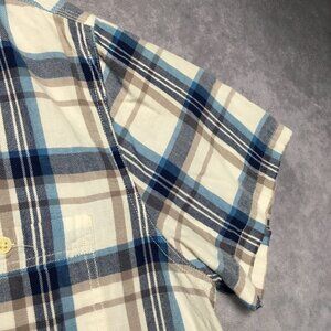 Lucky Brand Men Button Up Plaid Shirt size XL Short Sleeve Blue White California