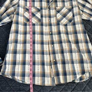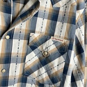Lucky Brand Men Large Pearl Snap Western Long Sleeve Gray Tan Flannel Shirt U