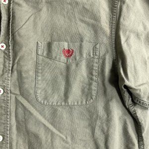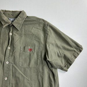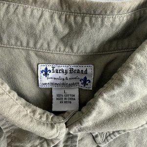 Lucky Brand Mens Army Green Button Down Shirt Size Large Short Sleeve Casual