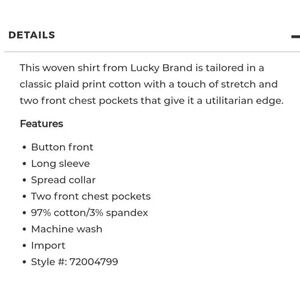 Lucky Brand Men's Blue Plaid Long Sleeve Large Front Pocket Shirt NEW MSRP $69